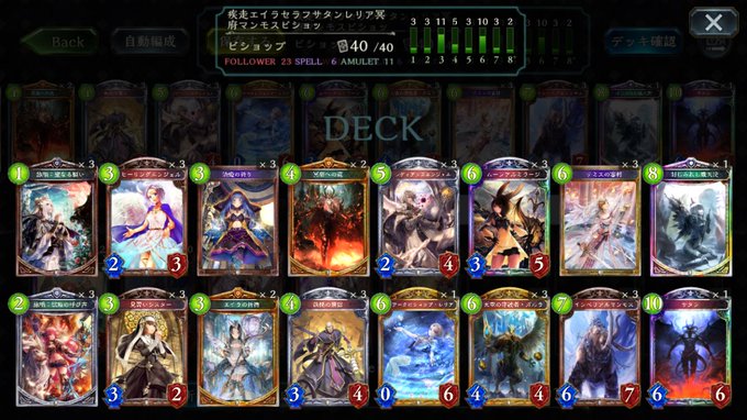 エルフビショップ シャドバ エイラの亀頭でムキムキにしてツインプリズナーの合体を狙うデッキです 60回ほど試しましたが勝率5割くらいなのでかなり強いです 合体は0回でしたのでそこそこの確率で合体できます 新たなる運命が事故回避